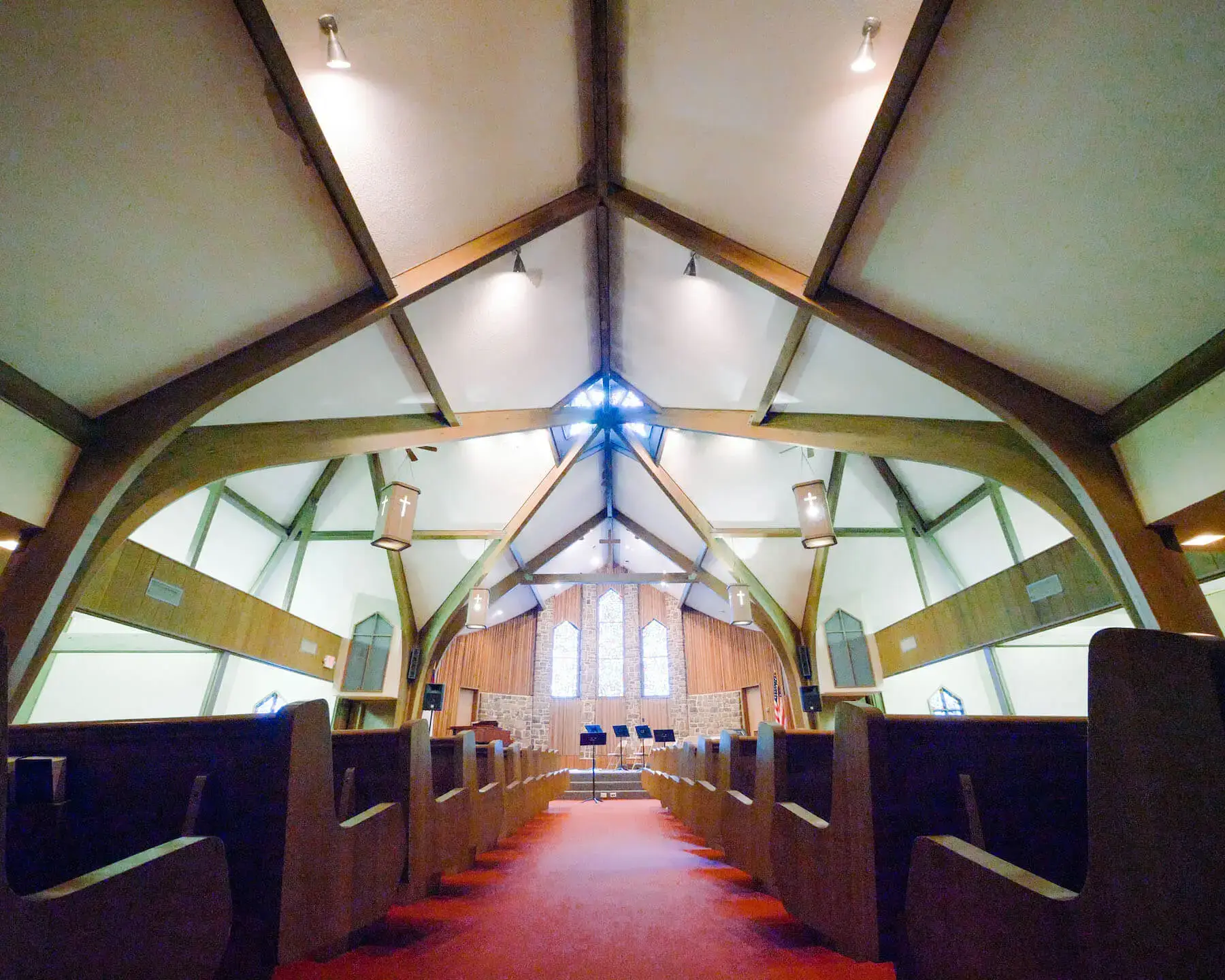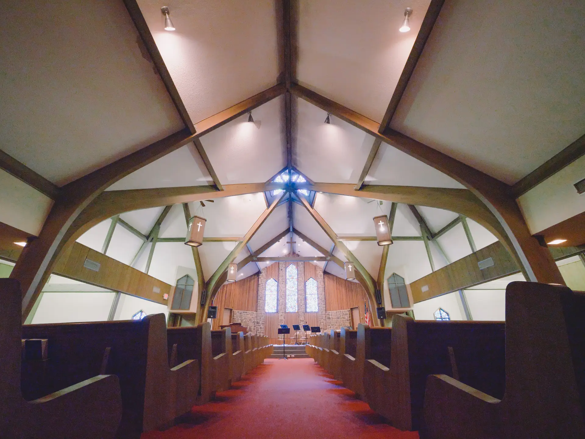 - There are two rooms (one on each side of the chapel) that can each be split into two rooms. Each small room can hold about 15 people.