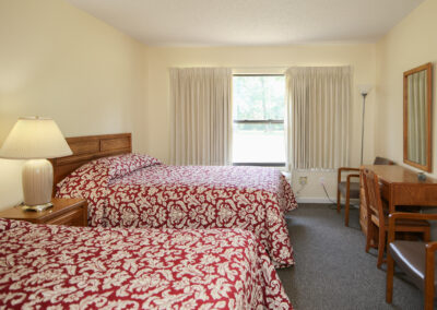 - There are six (6) hotel-style rooms in the Guest House. Each room has one (1) queen size bed, one (1) twin size bed, and a private bath.