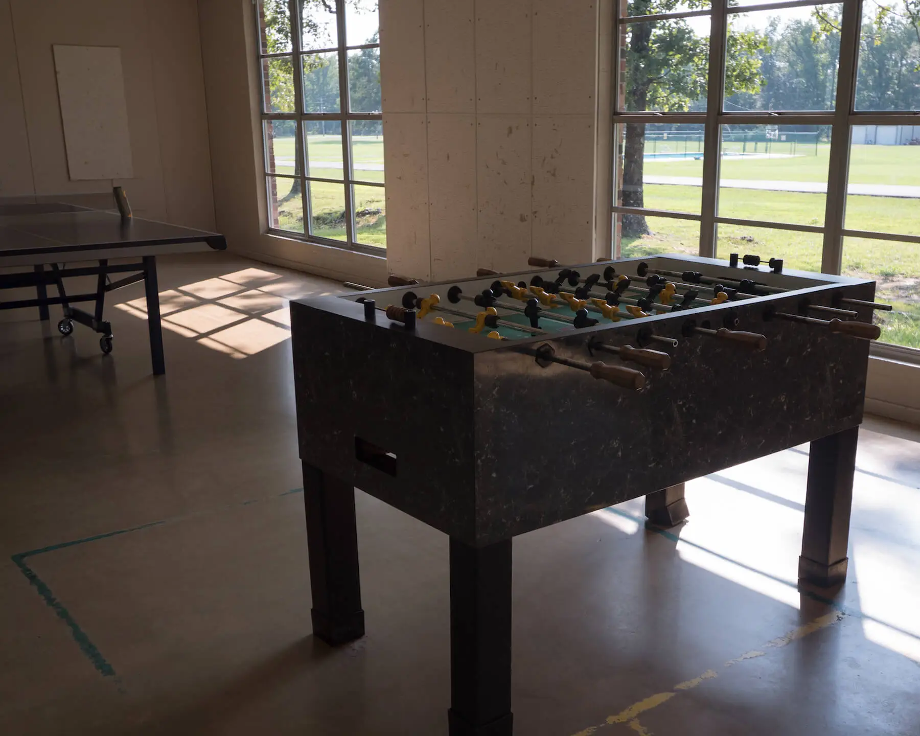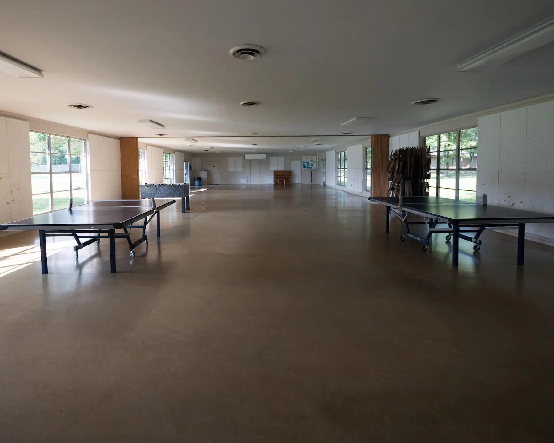 The Activities Building is outfitted for just about any game or activity you might have in mind for your group. While it has the feel of a gymnasium, you won’t feel like you’ve been indoors! the windows of the Activities Building provide both natural lighting and a beautiful view of Camp Paron’s campus.