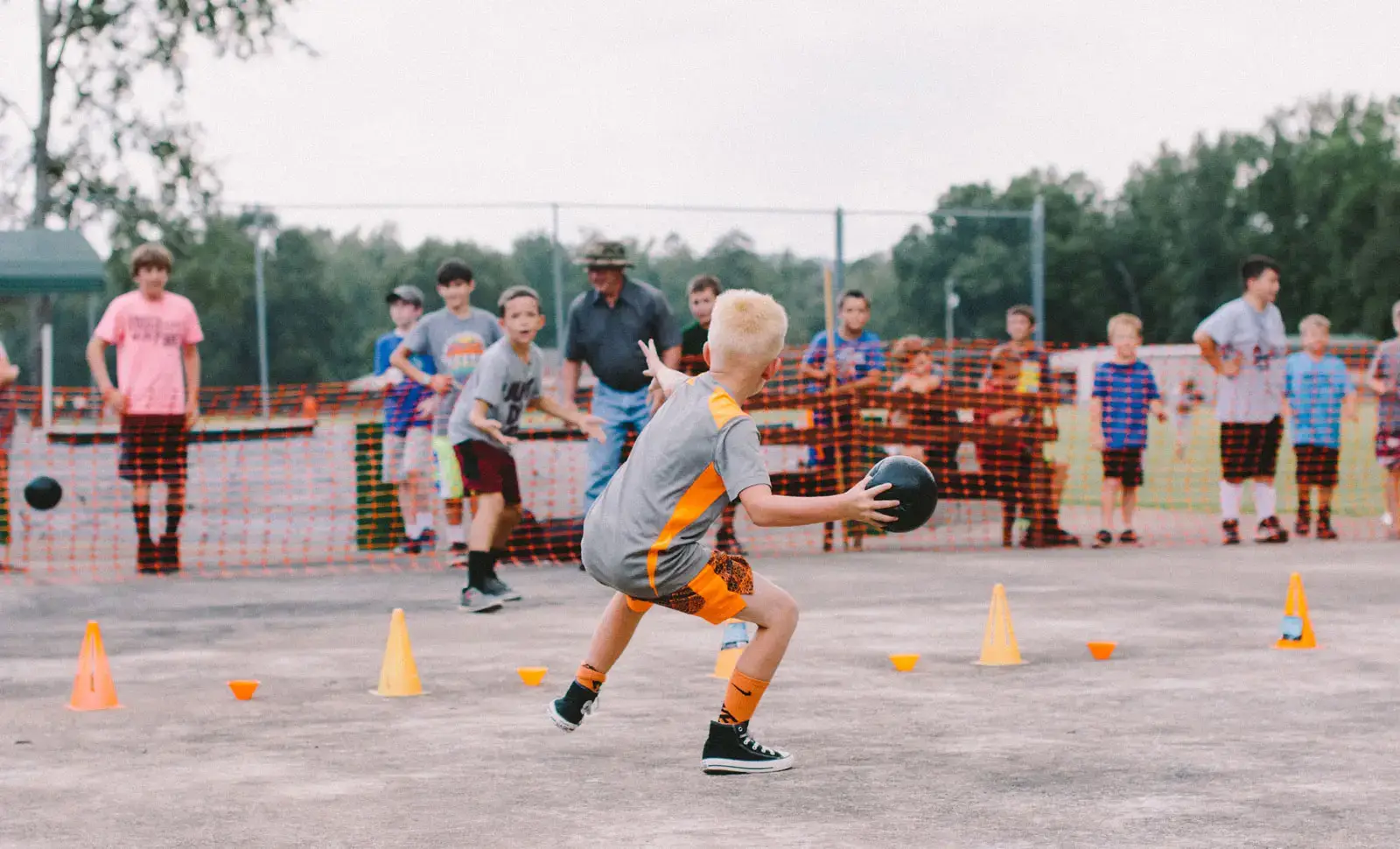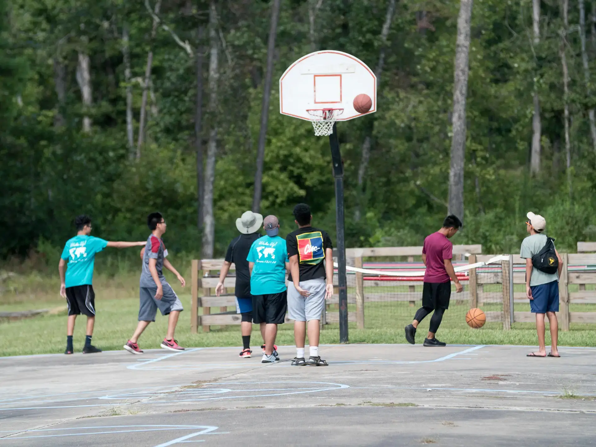 High energy activities include baseball, basketball, Frisbee golf, gaga ball, hiking, human foosball, 9-square in the air, soccer, swimming, and volleyball. More leisurely activities include gathering around our campfire, playing ping-pong or horseshoes, and walking through the campground.